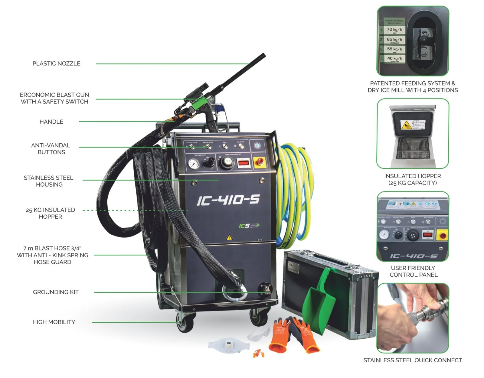 With its sophisticated design and outstanding technical parameters, you can set yourself apart from the competition with the Dry ice Blaster IC 410 S. If you are looking for versatility, power and effectiveness combined in one machine, it is IC 410 S ready to tackle any cleaning challenge.